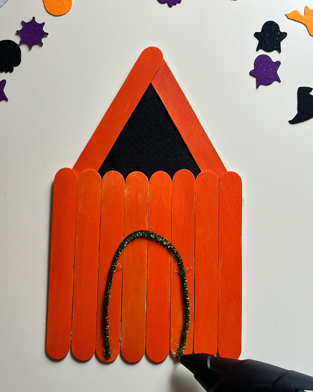 Laat je leerlingen een stukje chenilledraad buigen in een halve boog en vastlijmen als deur. En als laatste detail een mini pompon vastlijmen als originele deurklink!