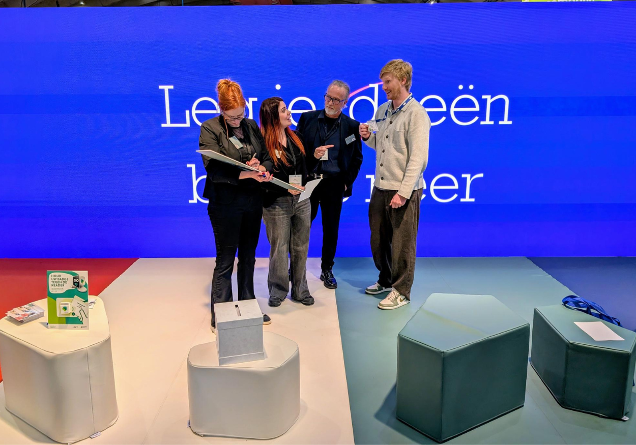 Wie onze stand bezocht, kon meedoen aan onze beurswedstrijd door drie multiplechoicevragen te beantwoorden. De antwoorden zaten subtiel in de video verstopt, dus opletten loonde! Twee gelukkige deelnemers gingen naar huis met vier poefjes per winnaar.